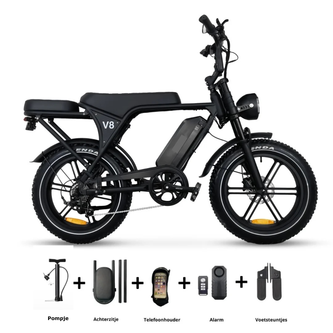 De OUXI V8 6.0 Elektrische Fatbike met NFC (25 km/u) is de nieuwste evolutie binnen de populaire V8-serie. Deze legale elektrische fatbike combineert een strak design met moderne technologie en betrouwbare prestaties voor zowel stadsritten als langere tochten.